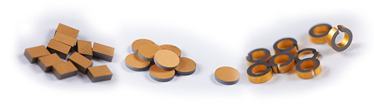 Our soft PZT materials are available as plates, discs, rings, bars, rods and tubes. Other components are available upon request. We also offer our piezoelectric parts in thickness mode, shear rode, and radial poling. Please click here for more information about common parts and tolerances.